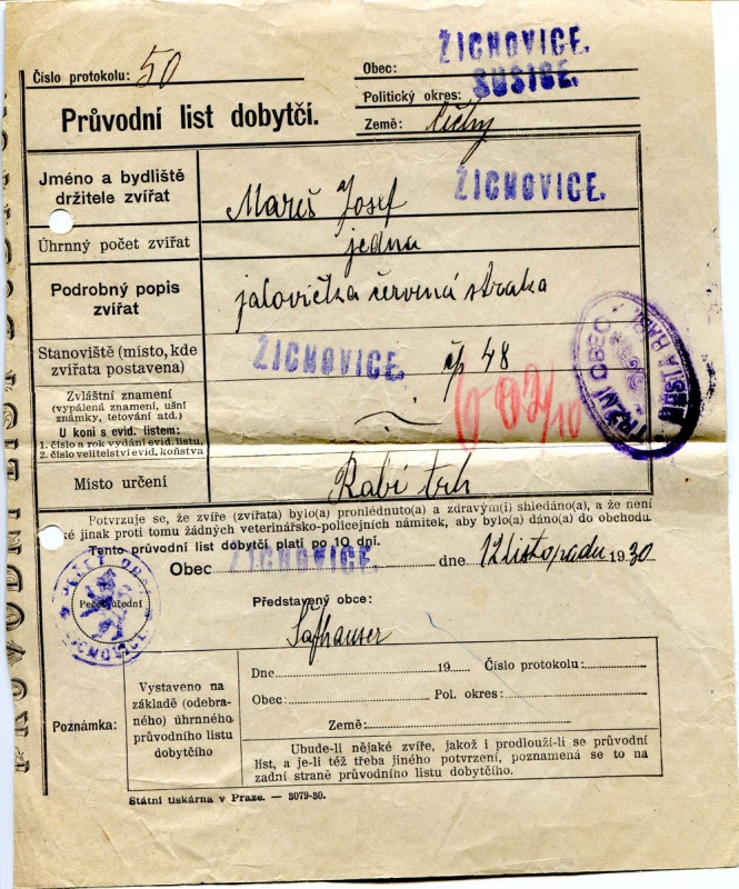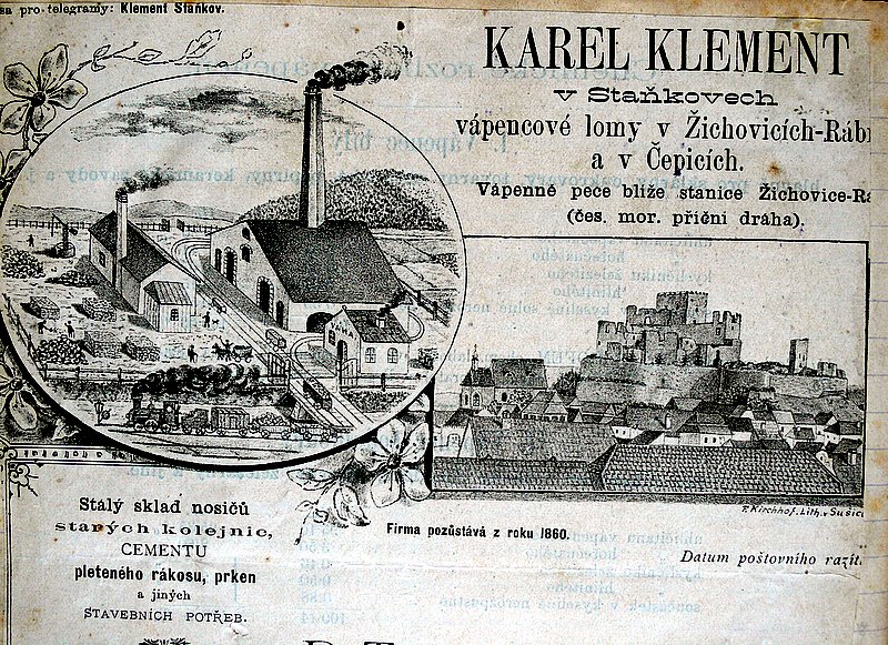 Telegramy Karel Klement vápencové lomy v Žichovicích