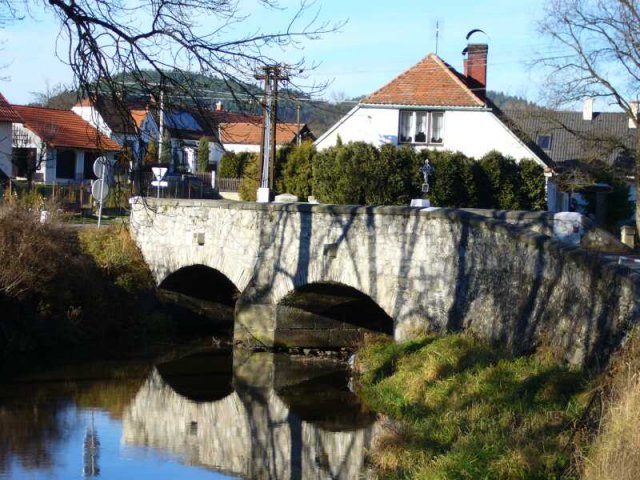 Druhý kamenný most v obci je nyní už jen zčásti dvouobloukový s téměř půlkruhovými klenbami, které v západní – v nové době stržené - části doplnily železobetonové přímé nosníky. Most pochází z 18. století, jeho nepříliš zdařila úprava proběhla v polovině 20. století. Nazývá se také Horní most a překonává říčku v obci směrem k nádraží Českých drah. Dnes je u zámku v obci barokní socha sv. Jana Nepomuckého z první poloviny 18. století, která stávala na mostě, s velkou pravděpodobností právě na Horním.